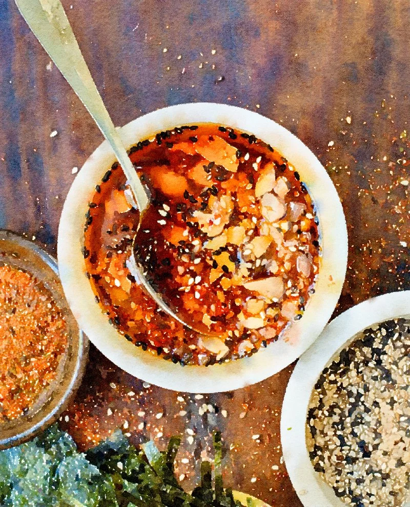 shichimi togarashi-spiced sesame chili oil (recipe below)