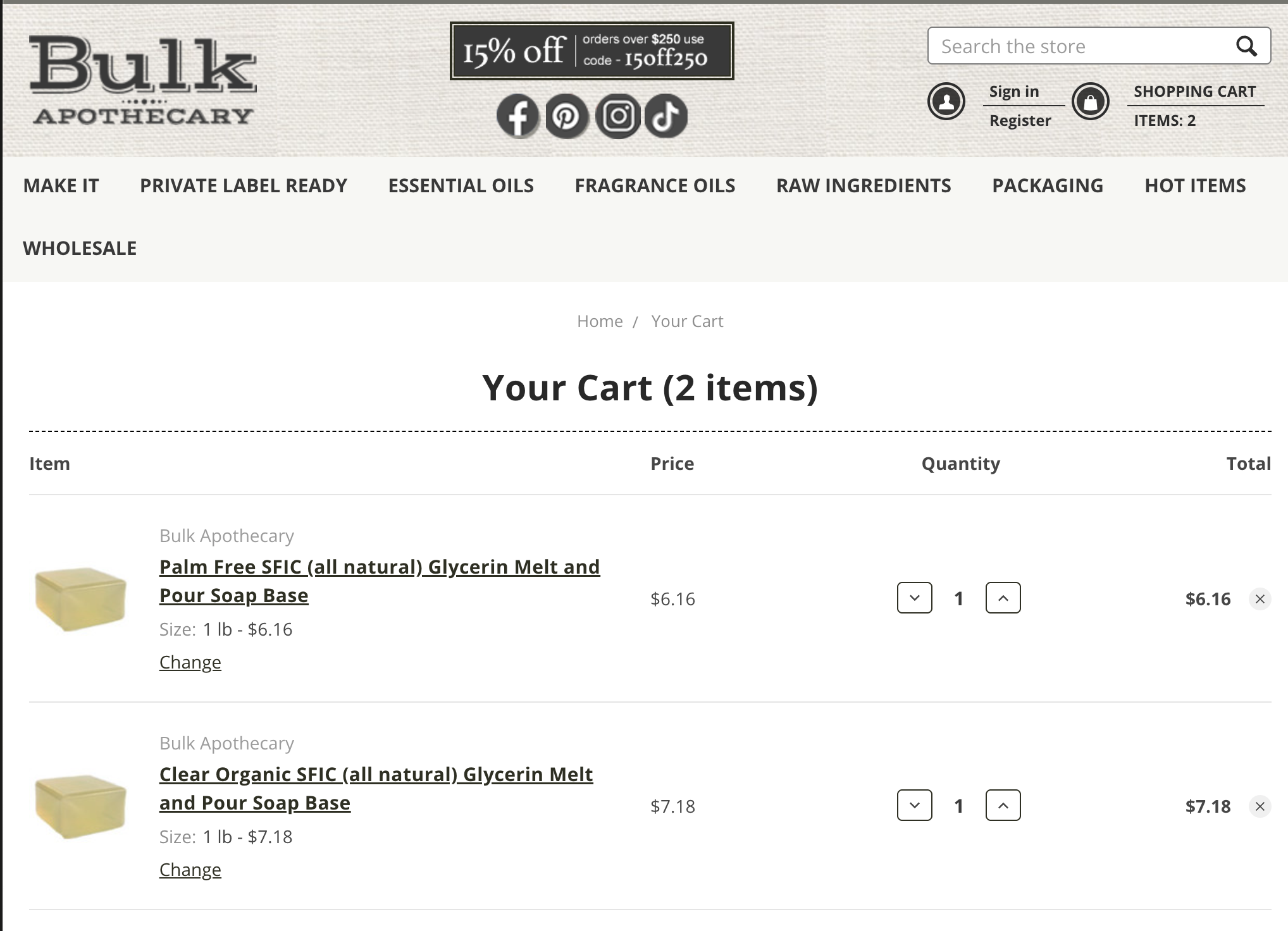 Look for bases with: glycerin, coconut oil, palm oil (sustainable), water